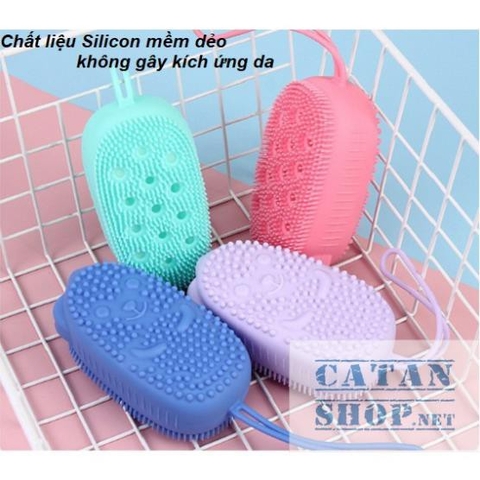 Bông tắm silicon 2 mặt, 1 mặt tẩy da chết massage body, 1 mặt tạo bọt. Có dây treo vô cùng sạch sẽ